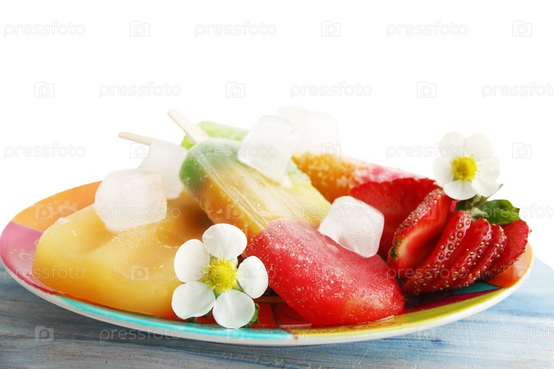 Замороженный фруктовый сок с мятой и клубникой на тарелке