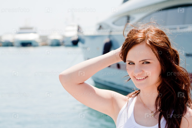 Девушка на фоне яхты