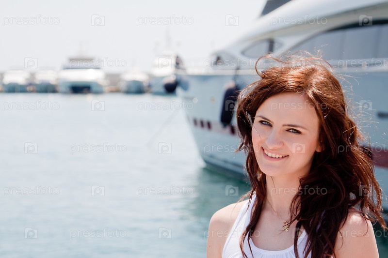 Девушка на фоне яхты
