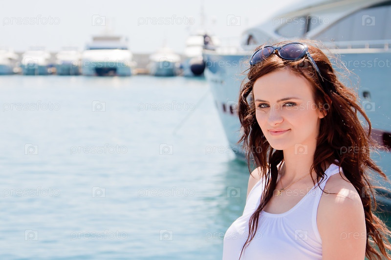 Девушка на фоне яхты