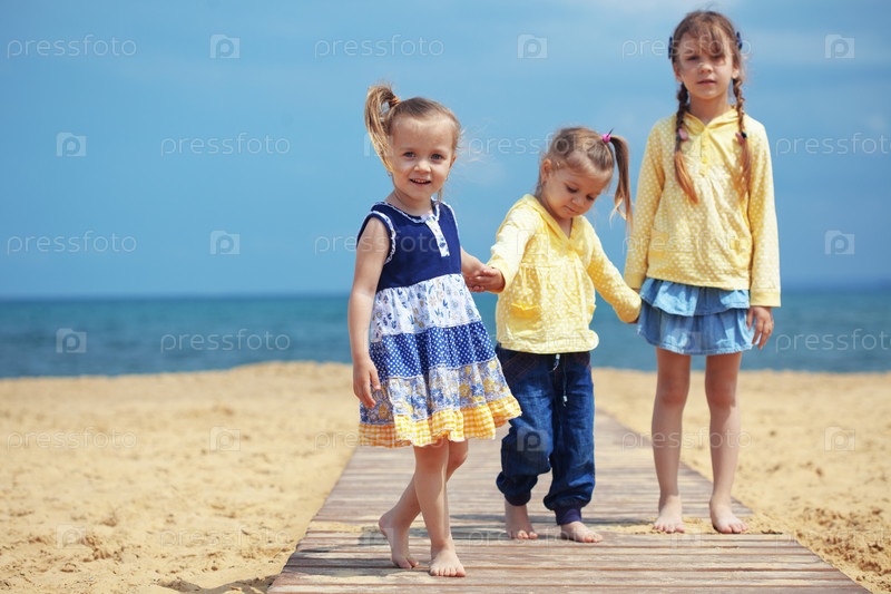 Группа детей играет на пляже