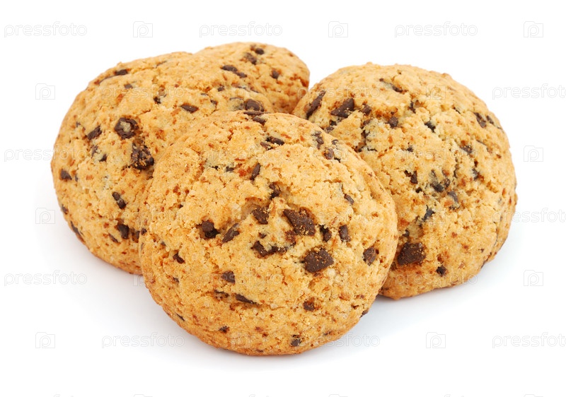 Печенье с шоколадом на белом фоне