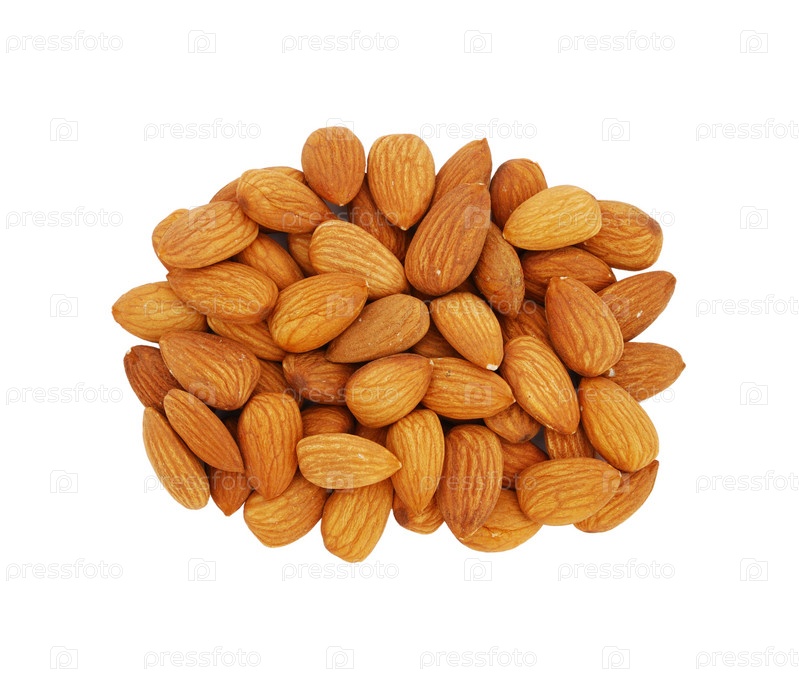 Кучка миндаля на белом фоне