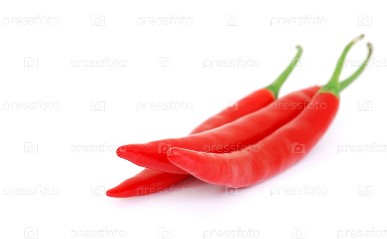 Три красных острых перца чили, изолированных на белом фоне