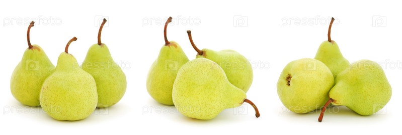 Набор изображений с грушами, изолированными на белом фоне