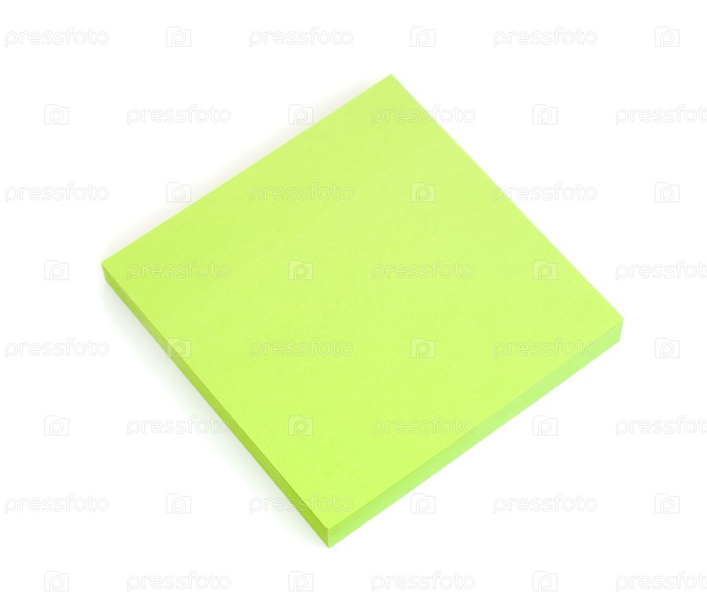 Чистый зеленый блок бумаги для записей, изолированный на белом фоне