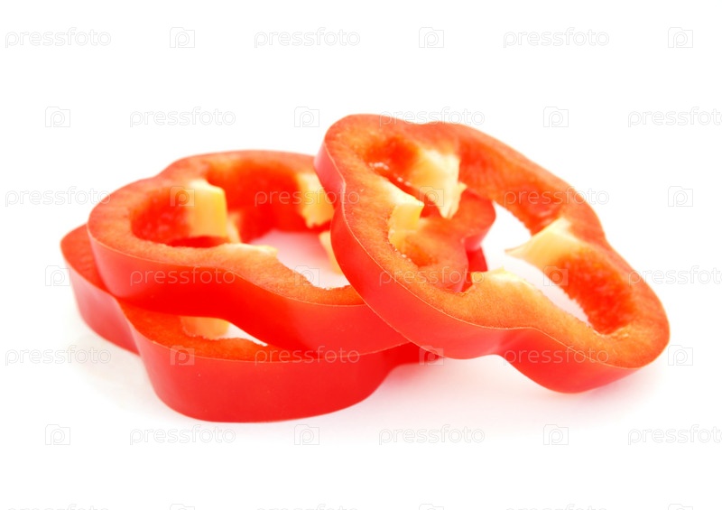 Разрезанный красный сладкий перец, изолированный на белом фоне