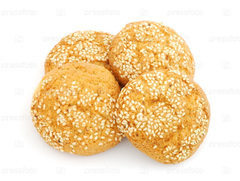 Стопка печенья с кунжутом, изолированная на белом фоне