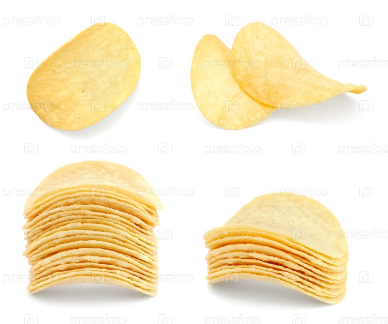 Картофельные чипсы на белом фоне