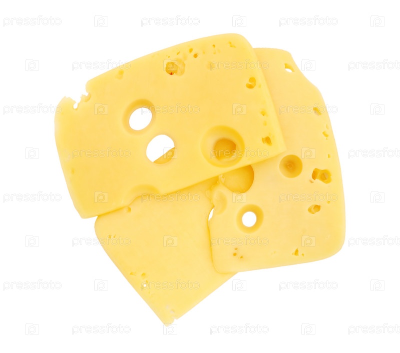 Ломтики сыра на белом фоне
