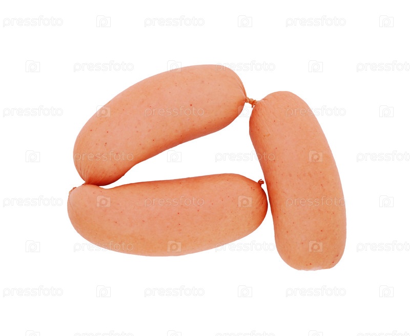 Три сардельки на белом фоне