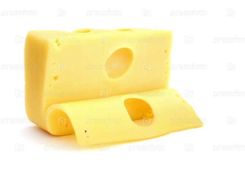 Сыр с отрезанным ломтиком на белом фоне