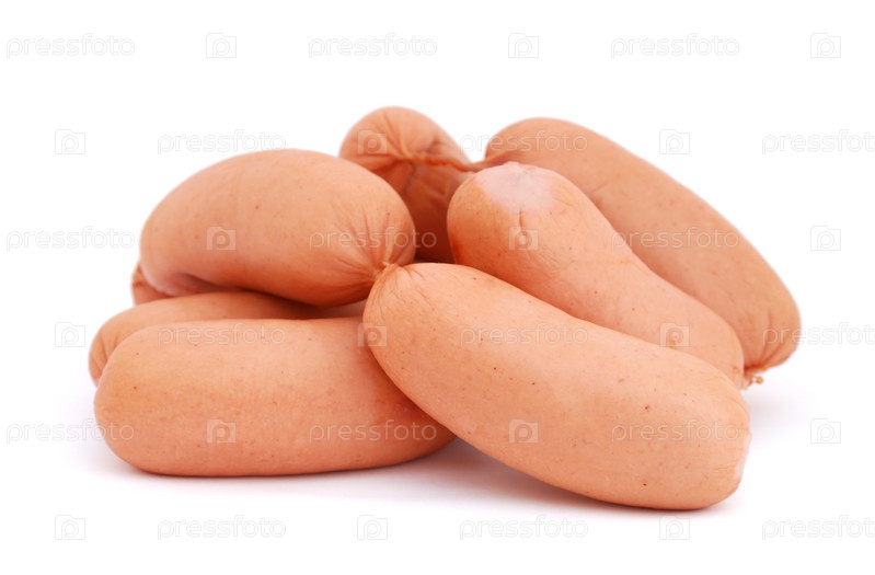 Сардельки, изолированные на белом фоне