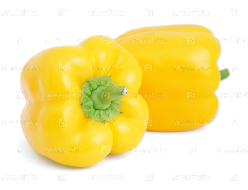 Два желтых болгарских перца на белом фоне