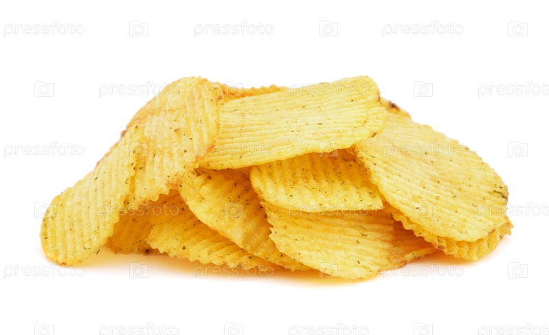 Картофельные чипсы на белом фоне