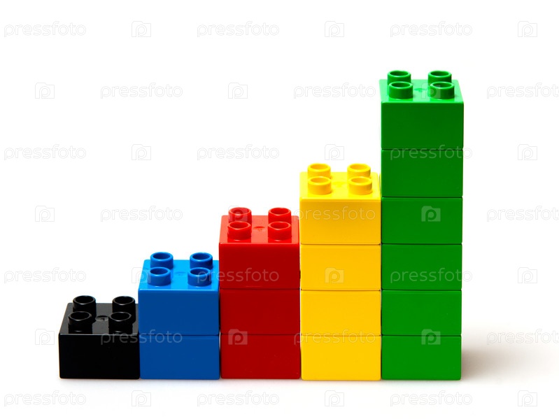 Разноцветные кубики в ряд, изолированные на белом фоне