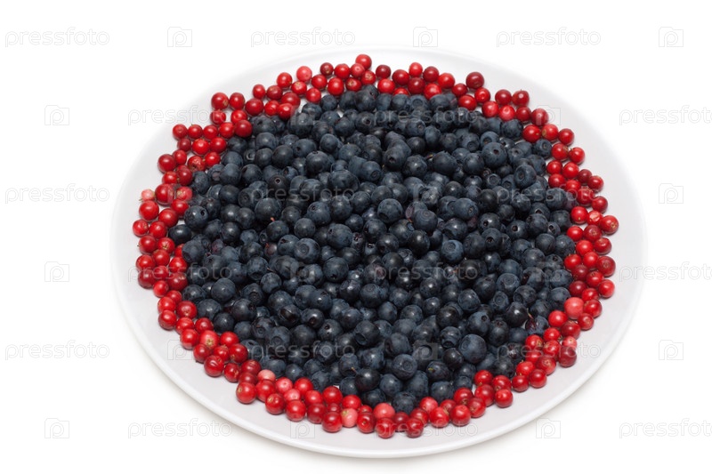 Черника и брусника на тарелке, красиво оформленные