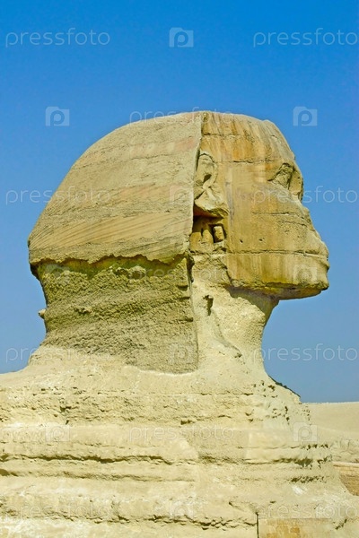 Знаменитый египетский Сфинкс на фоне голубого неба