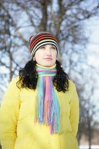 Девушка в цветной шапке и шарфе