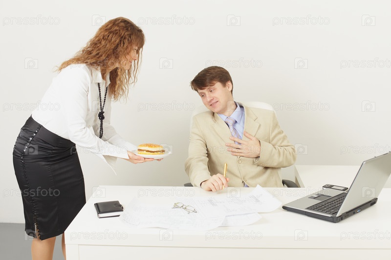 Секретарь принесла гамбургер своему начальнику
