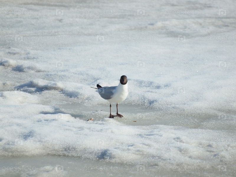 Чайка озёрная на льду озера