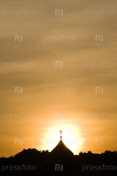 Силуэт купола церкви с крестом на закате солнца