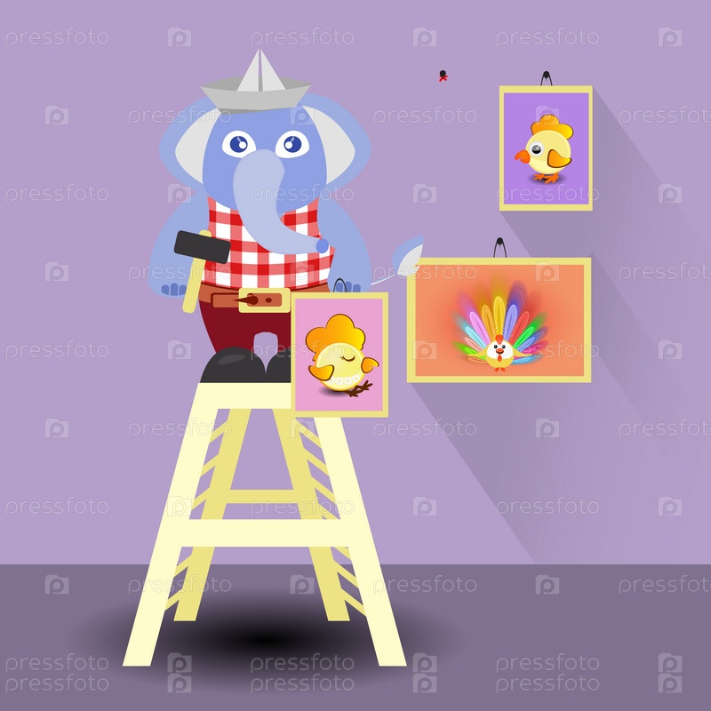 Слон вешает картины
