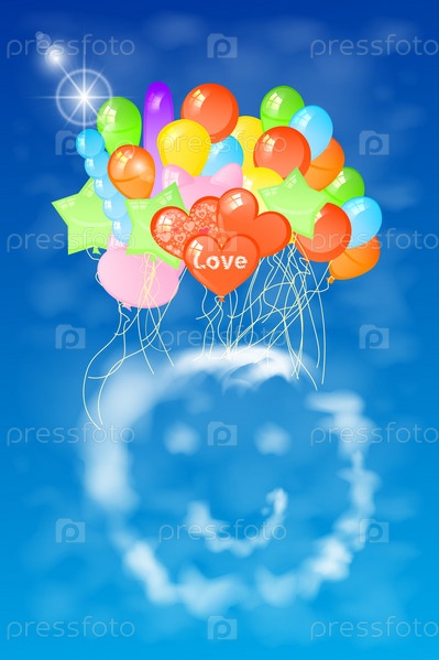 Смайлик из облаков с воздушными шарами