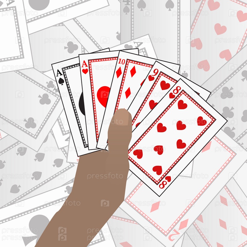 Покерные карты на фоне карточного стола