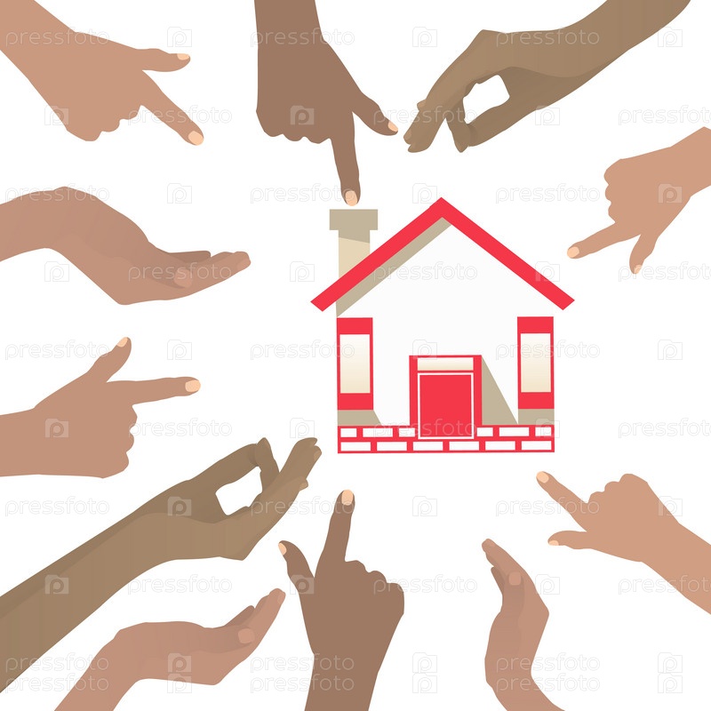 Многие руки указывают на дом