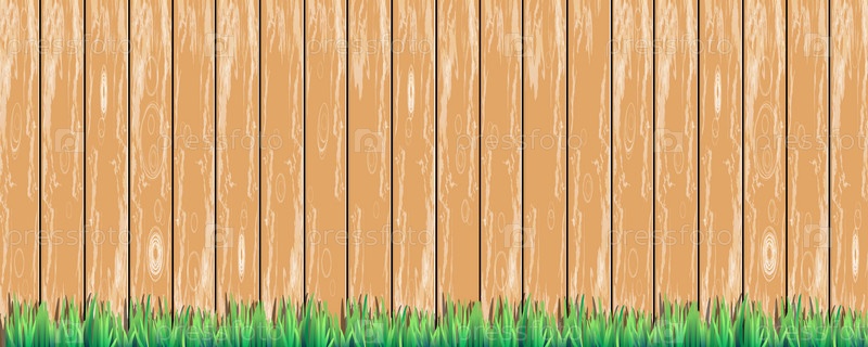 Деревянный забор с зеленой травой