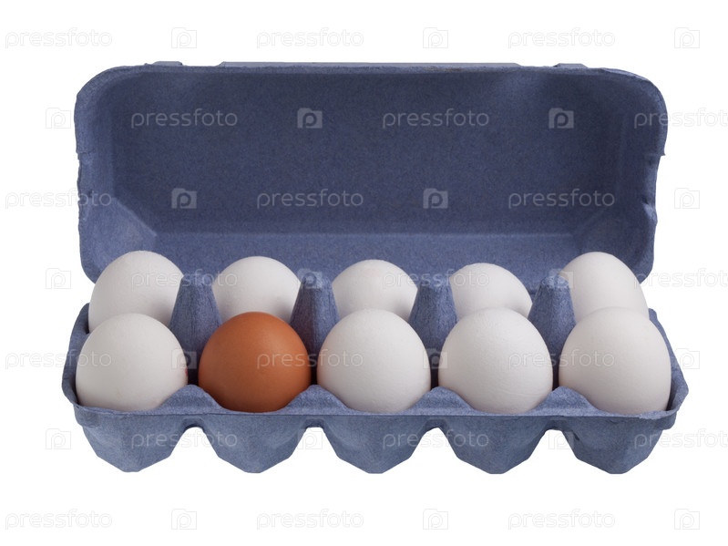 Одно коричневое яйцо среди белых яиц