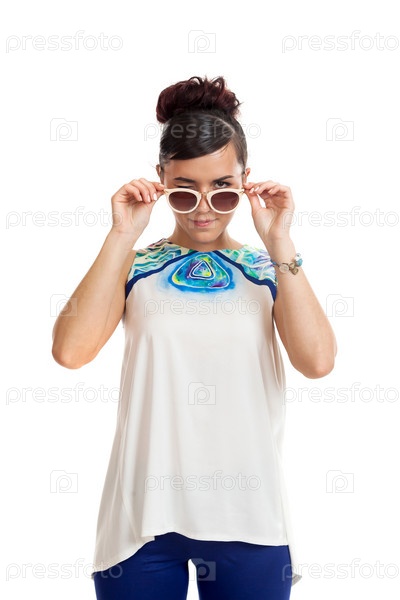 Молодая женщина в солнечных очках и в удобной одежде