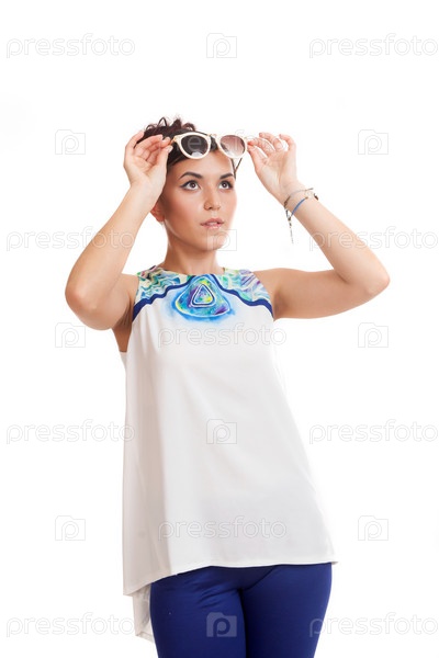 Молодая женщина в солнечных очках и в удобной одежде