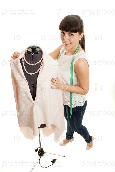Женщина шьет одежду