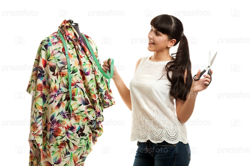 Женщина шьет одежду
