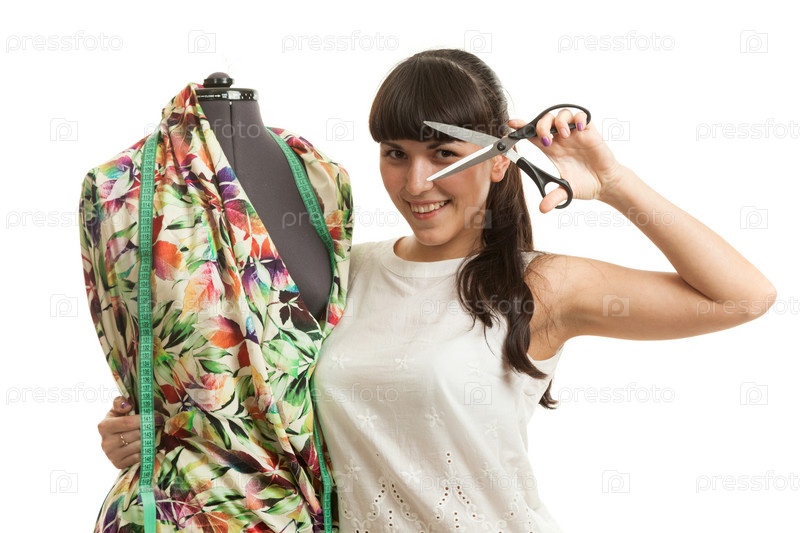 Женщина шьет одежду