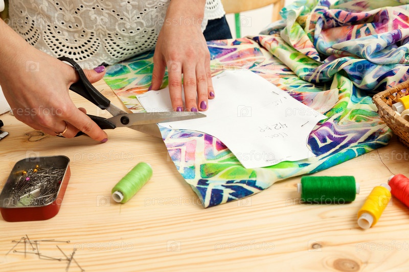 Женщина шьет одежду