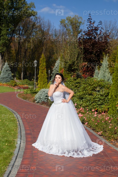 Невеста на променаде в летнем парке