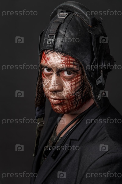 Забавный камуфляж военного стиля на лице танкиста