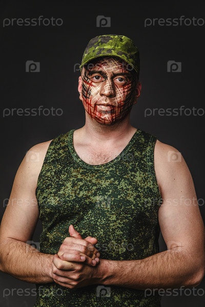 Забавный камуфляж военного стиля на лице танкиста