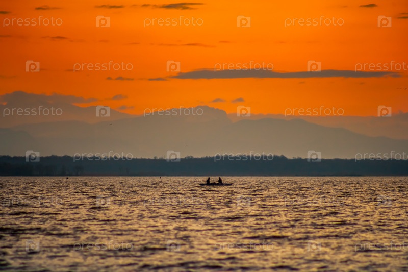 Красочные небо и вода в озере Палиастоми утром, Поти, Грузия