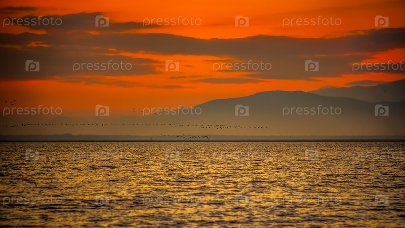 Мигрирующие птицы на озере Палиастоми, Поти, Грузия