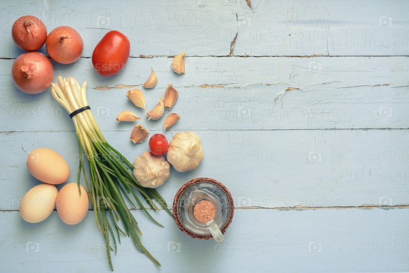 Лук, чеснок, яйца и масло