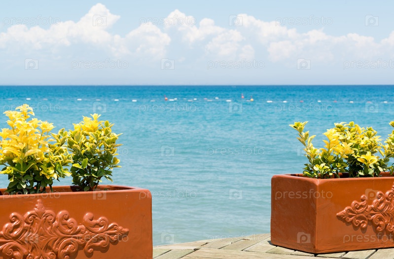 Желтые цветы и Средиземное море