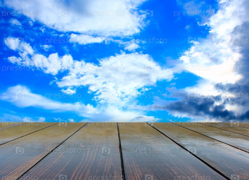 Стенд с деревянными досками с голубым небом