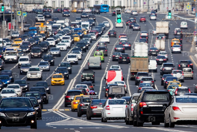 Перегруженная дорога с множеством автомобилей