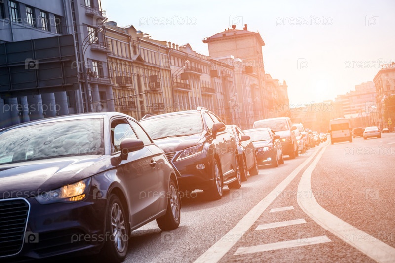 Вид снизу на полосу с автомобилями