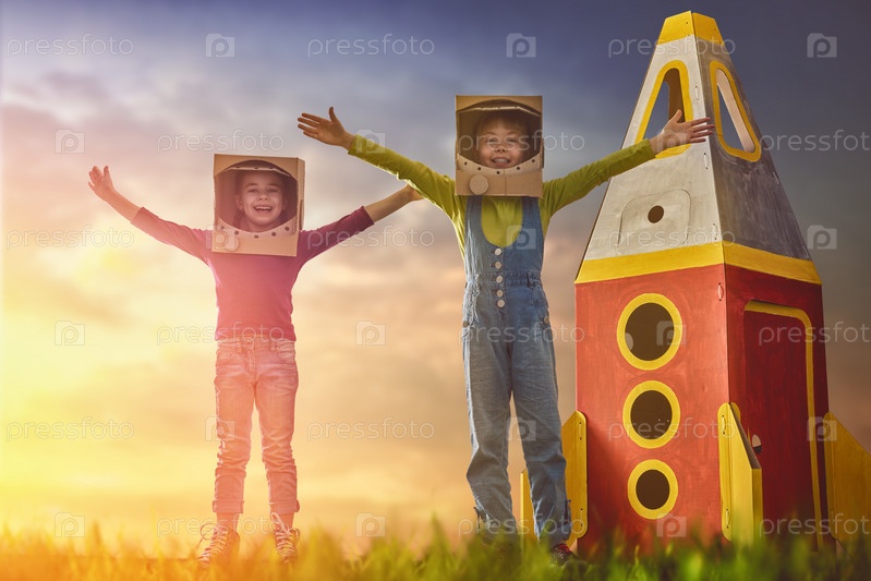 Дети в костюмах космонавтов