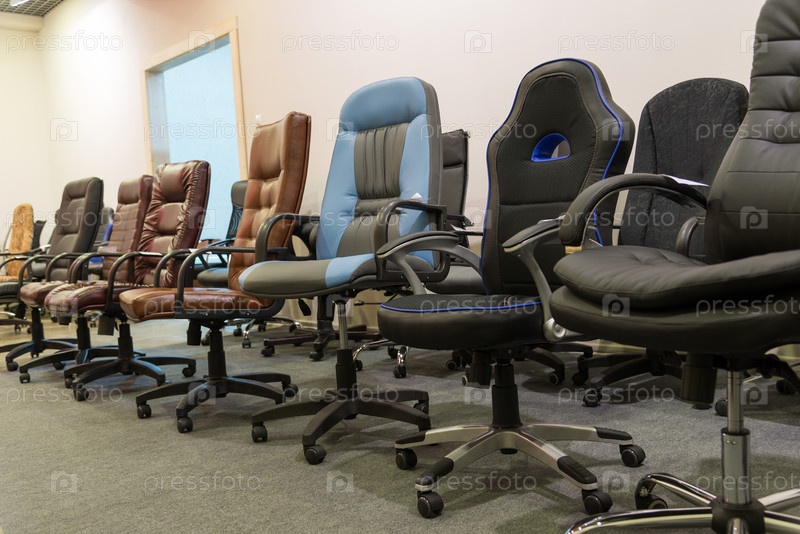 Стоящие в ряд офисные стулья в магазине